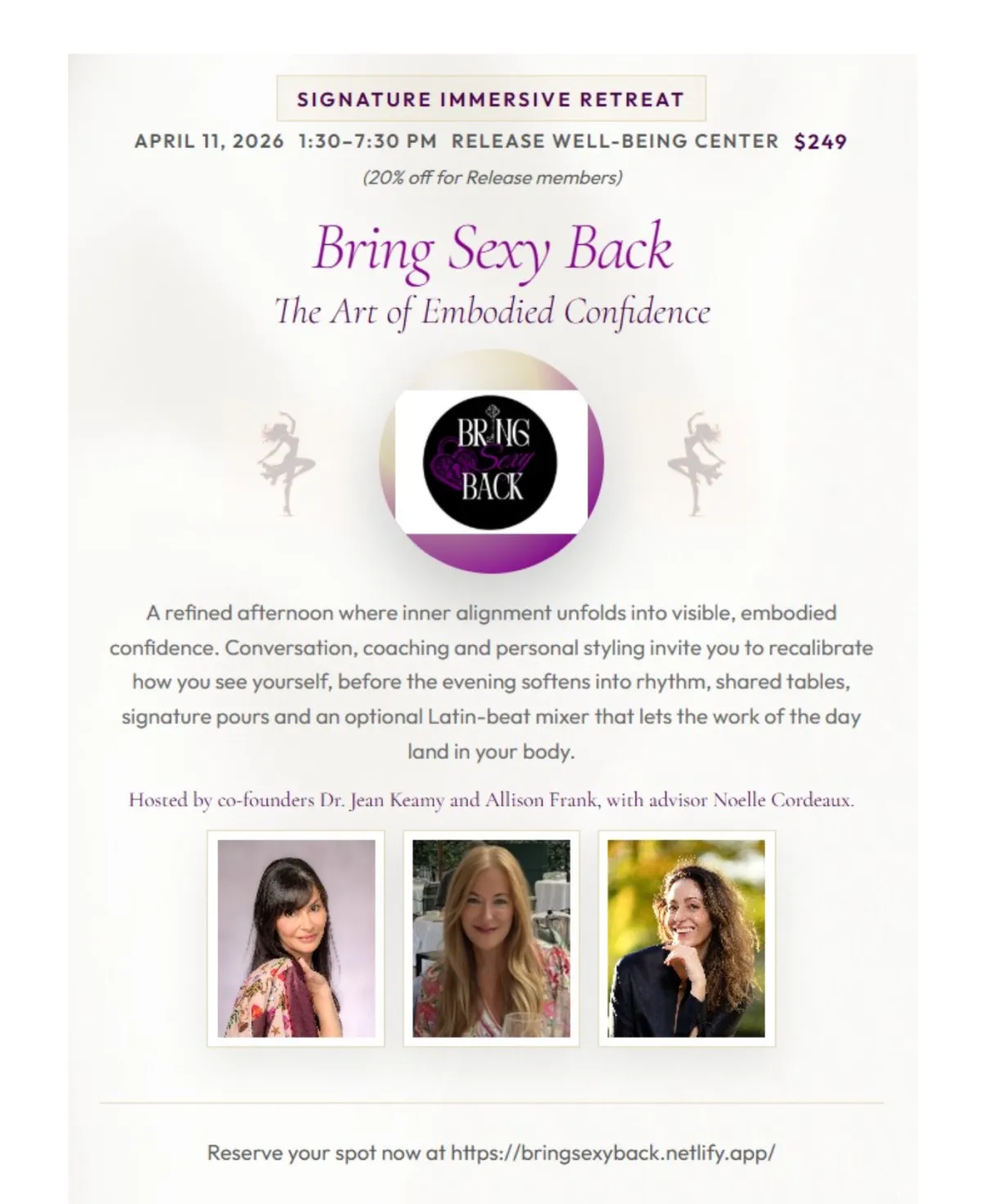 Our events aren’t just gatherings—they’re catalysts. Whether you’re joining a retreat, a masterclass, or a soul-nourishing sisterhood circle, every experience is designed to help you break free from self-doubt, reconnect with your body, and remember how powerful, sexy, and whole you already are.